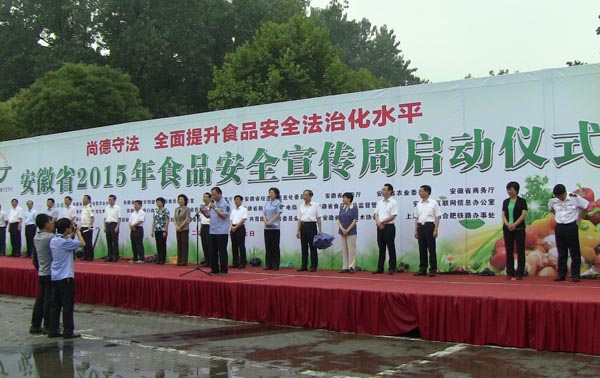 6月16日,全省食品安全宣傳周啟動(dòng)儀式在合肥市杏花公園門(mén)口隆重舉行。副省長(zhǎng)、省食品安全委員會(huì)副主任花建慧宣布活動(dòng)開(kāi)始,省農(nóng)委黨組成員、總農(nóng)藝師趙潁南參加宣傳周啟動(dòng)儀式。