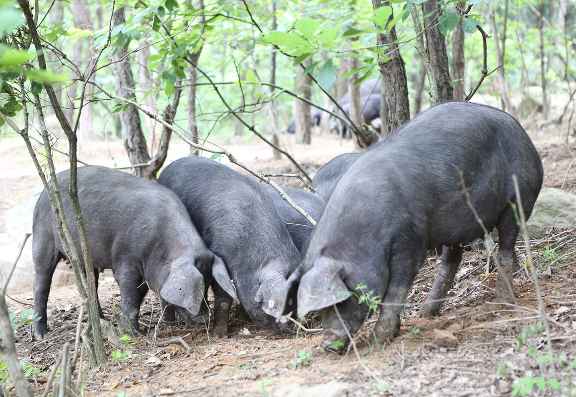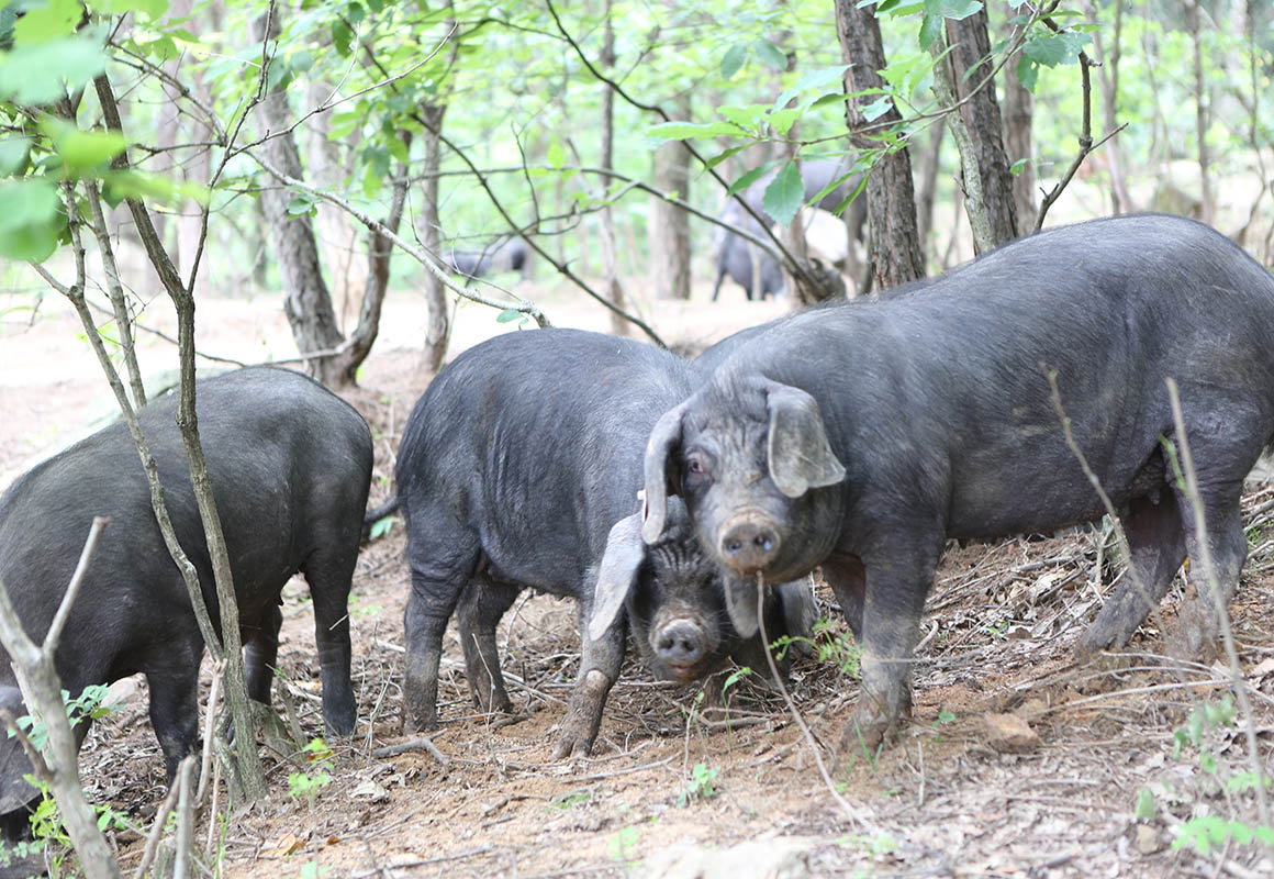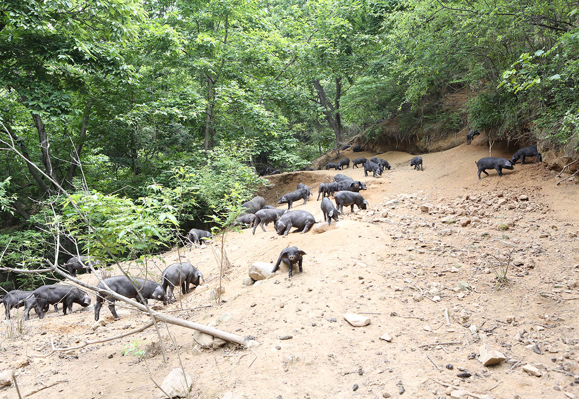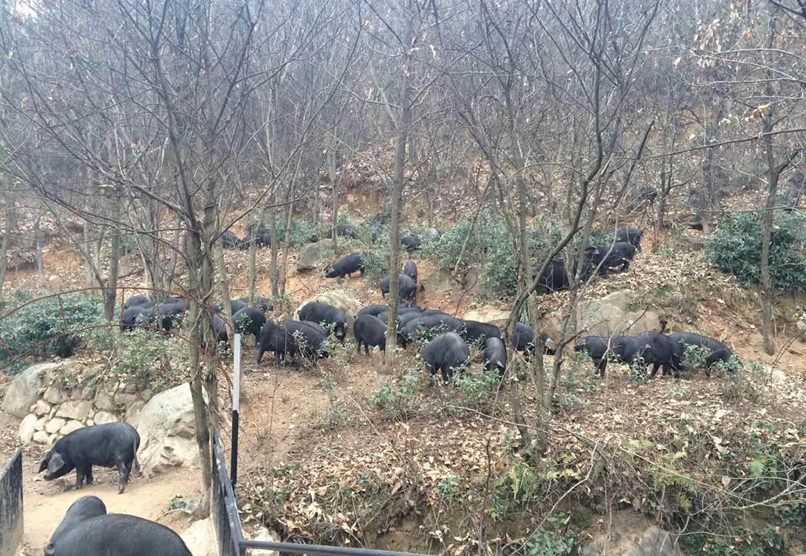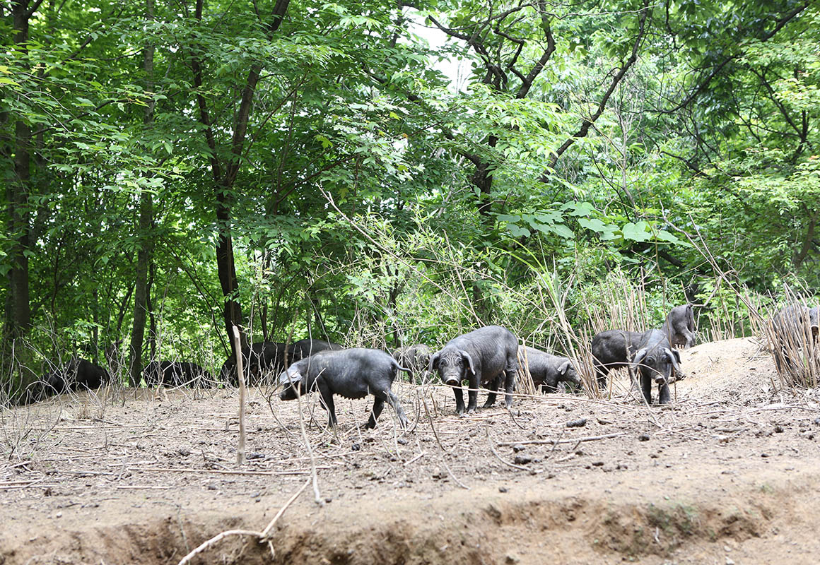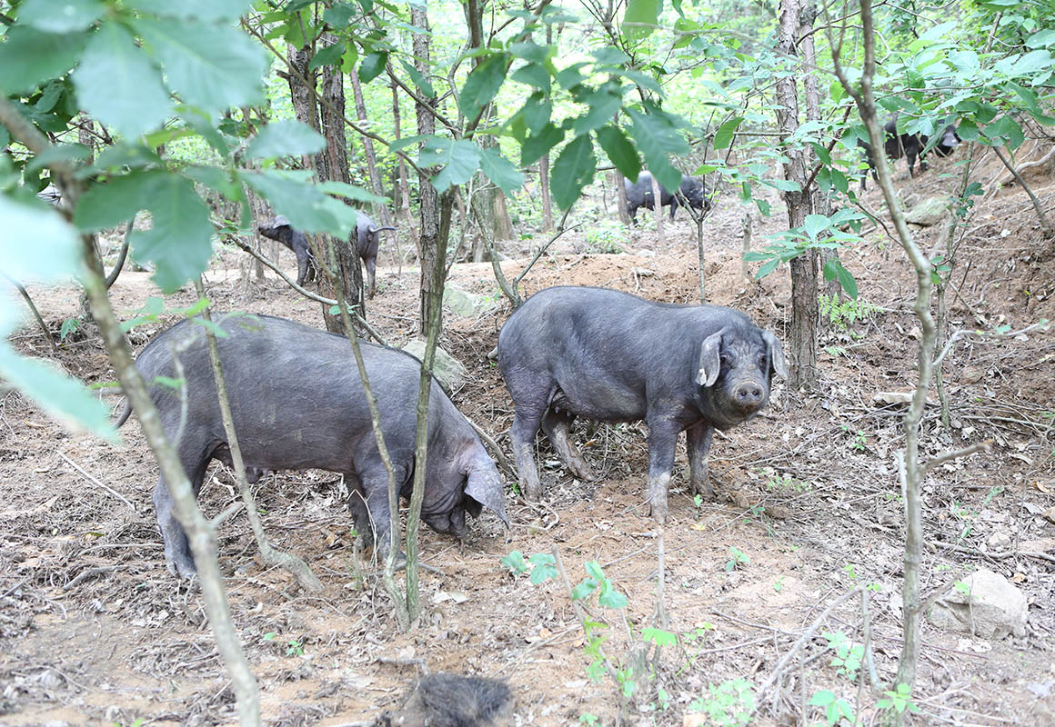 散放中的黑毛豬