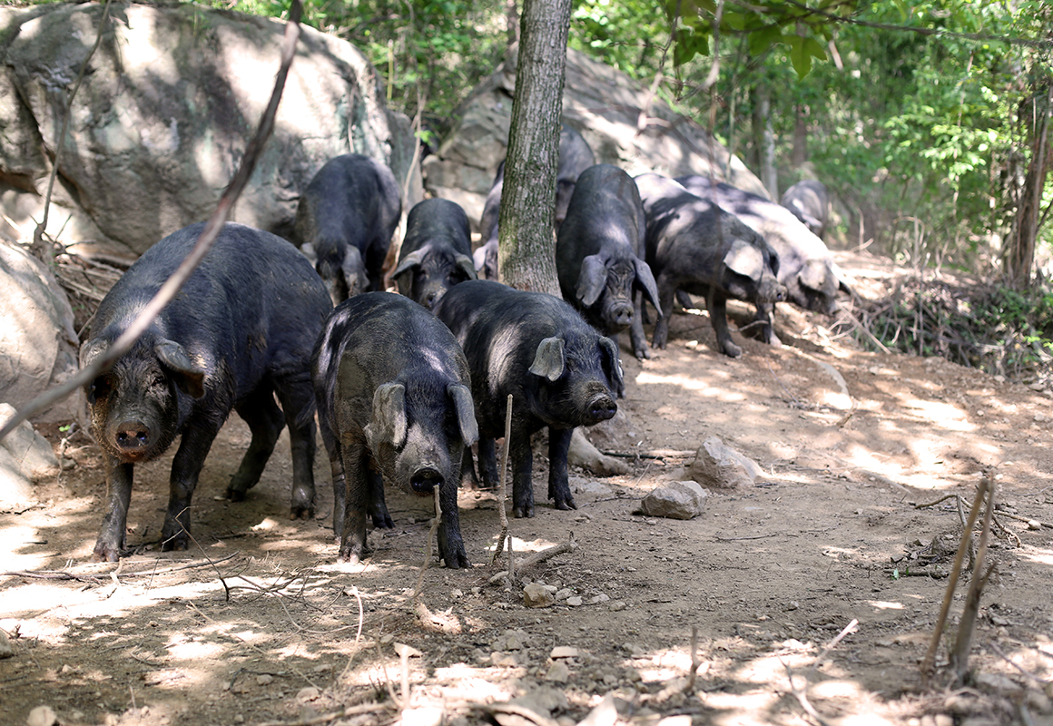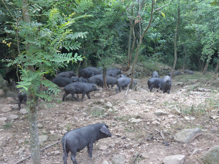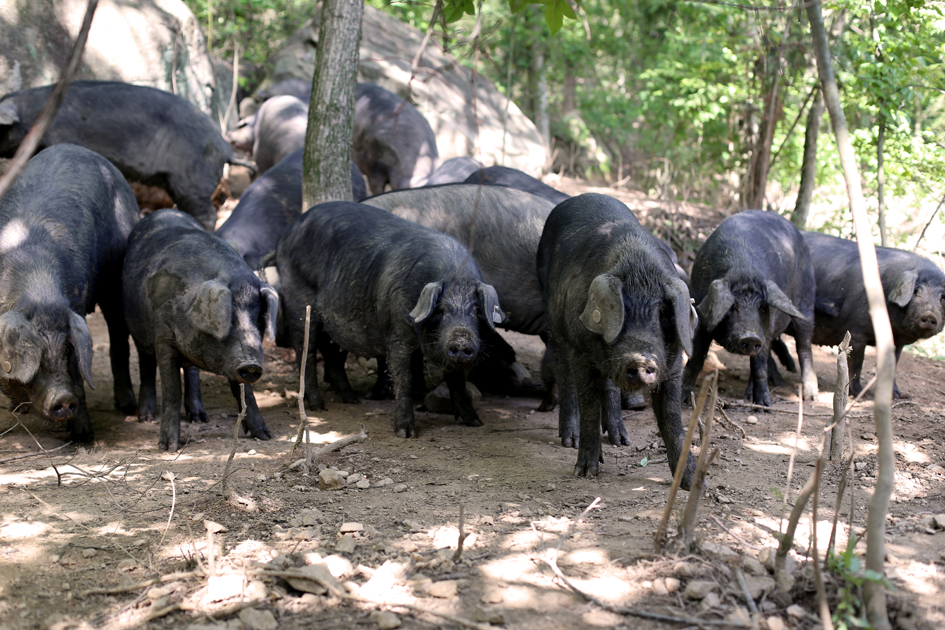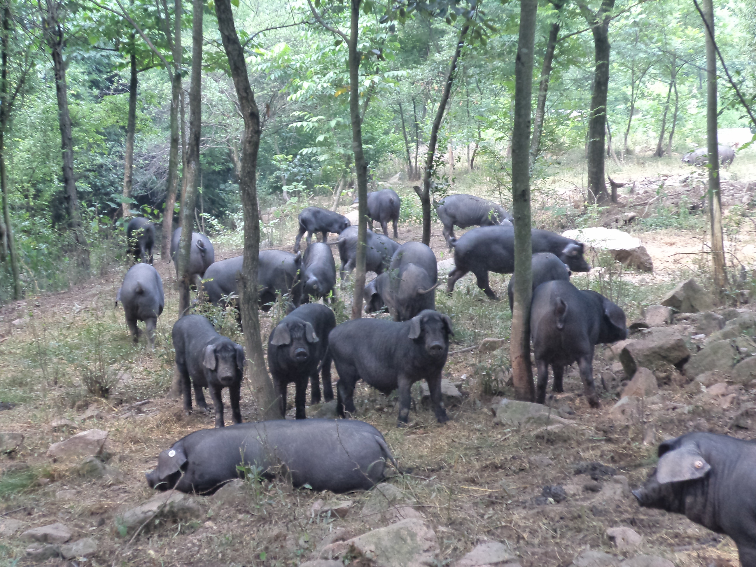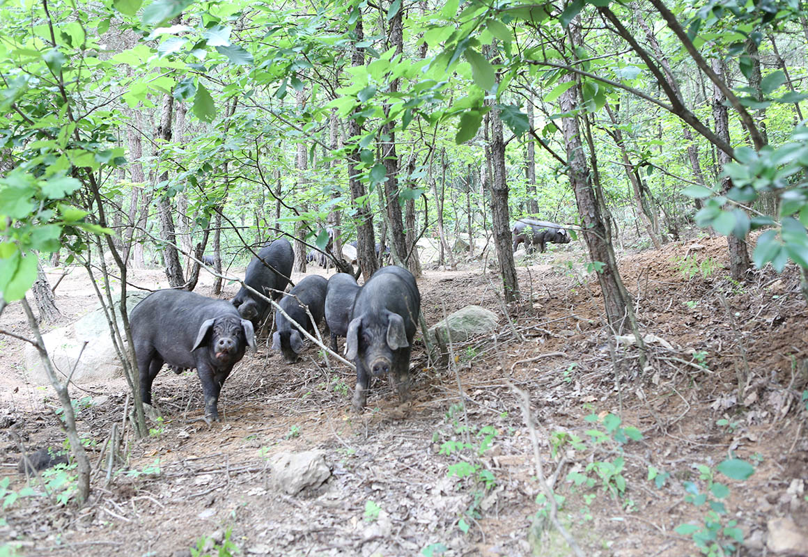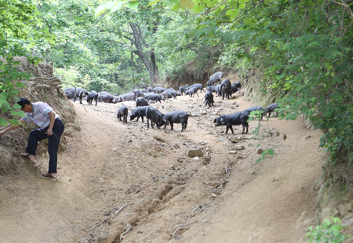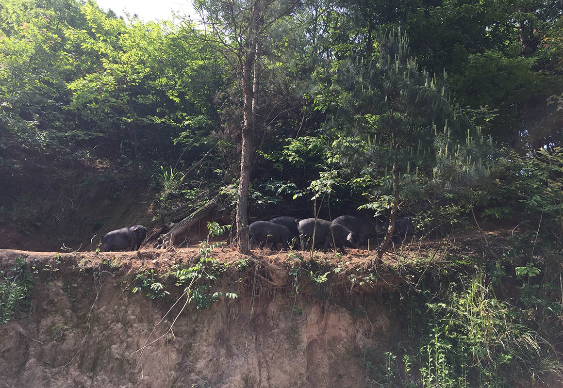 散放中的黑毛豬